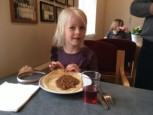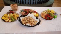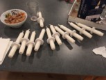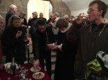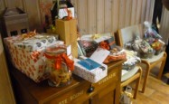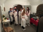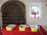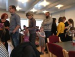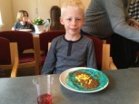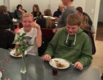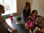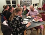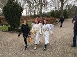 | Konfirmanderne havde arrangeret en hyggelig og børnevenlig gudstjeneste, flot og kreativt tilrettelagt af konfirmanderne, og medarbejderne. De havde malet ikoner, bygget gravhule, fremstillet tornekrone og kors til korsfæstelse, mens præsten måtte agere stand in for Maria til glæde for menigheden. Efter gudstjenesten løb de mange børn rundt på kirkegården for at finde påskeæg og slik. I konfirmandstuen blev der af flittige folk fra menighedsrådet serveret lækre pandekager med Jørn Eriks gode millionbøf samt sund bland selv salat. De lækkersultne kunne slutte af med is, syltetøj mm. i pandekagerne. |  |