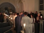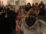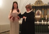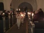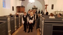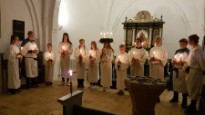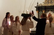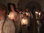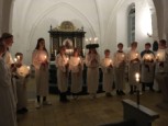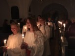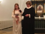 | Det er altid en stor og højtidelig oplevelse at se konfirmanderne bære lys ind iklædt hvide dragter og blå kapper, for drengenes vedkommende – til årets Luciaoptog. I år var ingen undtagelse. Mange var mødt op for at overvære de unge konfirmanders optog, læsninger og sågar guitarspil. |  |