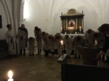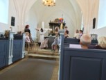 | Selv om sommeren kan være hektisk, så blev den i år både varm og solrig. Alligevel ønsker vi alle at få så meget ud af den som muligt. Vi kunne, denne regnfulde, kølige og grå aften midt i august, ved den Taizé inspirerede stillegudstjeneste, falde helt til ro i glæde, taknemmelighed, bøn, sang og stilhed i kirkens middelalder rum. Kirken var til anledningen oplyst af smukke stearinlys… – og der var selvfølgelig kirkekaffe efter gudstjenesten. |  |