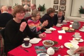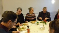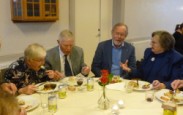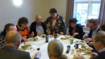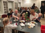 I år bød påskedagene på det smukkeste vintervejr, men der var dejligt varmt inde i kirken. Skærtorsdag var der gudstjeneste med smukt dækket nadverbord, hvor snakken gik livligt, mens der blev smagt på lækkerierne som Lise og Leif havde arrangeret.