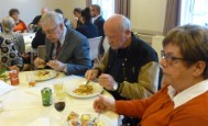 |  | Efter besøget i Brunkulslejren gik turen til Hotel Medi i Ikast, hvor der blev serveret lækker, mør, kalvesteg, stegt som vildt og til dessert var der islagkage. Derefter gik turen til Baunekirken i Tjørring, hvor der var gudstjeneste og rundvisning i den specielle og nyistandsatte kirke. Inden hjemturen blev der serveret friskbrygget kaffe og wienerstænger ved bussen. |