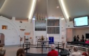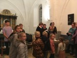 | Søndag d. 21. oktober 2018 kl. 9.00 var der tidlig gudstjeneste, hvor vi samledes omkring klaveret og sang både morgensalmer og sange. Der var også evangelielæsning, Fadervor og velsignelse. Og som afslutning blev der læst op fra et stykke skønlitteratur med noget på hjerte. Efter gudstjenesterne var der kaffe og hyggesnak i våbenhuset. |  |
