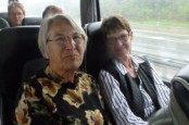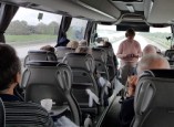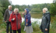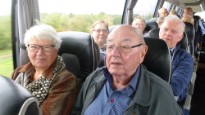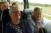 | Der var mange regntunge skyer på himlen, da bussen kørte afsted fra Orte og Kerte kirke med 49 spændte gæster. Morgenkaffen og rundstykkerne havde arrangørerne med og det blev serveret undervejs. Gud ske tak, så artede vejret sig fra sin venlige og smukke side med byger og sol. Der kom nogle få dråber regn under besøget i Brunkulslejren i Søby, som ligger nær Herning, men ellers regnede det kun når selskabet opholdt sig indendørs. |  | |