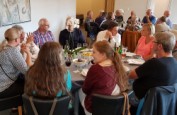 Lige fra morgenstunden gik snakken livligt over kaffen og rundstykkerne. Lidt rundt i omegnen kom guldkonfirmanderne også, og så blev det tid til en gudstjeneste i Kerte Kirke, hvor der blev sunget både gammelt og nyt fra salmebogen og Højskolesangbogen.
